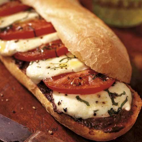 Tapenade, Mozzarella, olives, roquette.